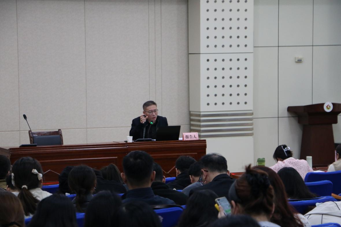 经济管理学院刘辉教授结合多年科研教学实践经验,以《新时代高校教师职业素养能力提升》为主题,围绕专业能力建设、育人理念创新、社会服务实践等核心维度,为宝鸡地区参会高校教师系统解读新时代高校教师的成长方向与发展路径。授课中,刘辉教授建议广大教师持续更新教育教学理念,不断提升专业核心能力,着力成长为兼具综合管理素养与过硬教学能力的优秀高校教育工作者。